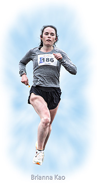 | Brianna at the start of the 15Km de Grande-Digue[Photo by: ???] | Brianna during the 407edition of the Demi-marathon de l'Acadie [Photo by: Guy Lanctot] | Winner, Brianna Kao, of the 2025 Fredericton Marathon. [Photo by: ???] |