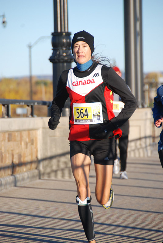 It was at university that I really got excited about competing. That's where I met Marc, my husband. He was a serious athlete who trained with clear objectives and goals. In his second year, he left UdeM to go study at the University of Guelph. I wasn't planning on running X-C that year because I was waiting for ankle reconstruction operation. However, when I found out that the X-C university championships were at Guelph I decided to run for U de M. I qualified for Nationals by finishing 2nd in the eastern conference. Top two went to Nationals. There I was at the Nationals, running the most exciting race, and I was up there with the leaders. Wow! Marc was amazed and so was I. I finished third. That was the beginning of wanting more exciting experiences like that.